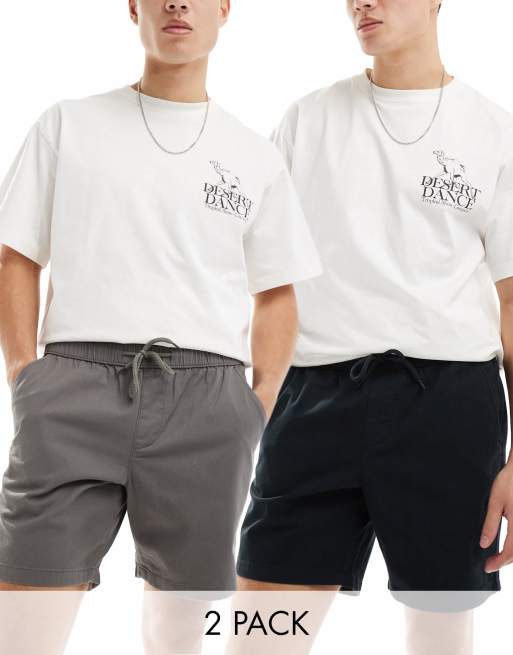 ASOS DESIGN – Svarta och grå, smala chino-shorts, 2-pack – Spara