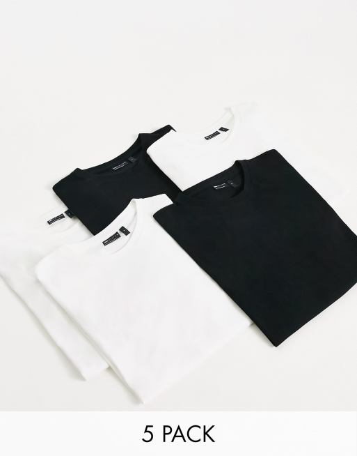 ASOS DESIGN – Svarta och vita t-shirts med rund halsringning, 5-pack