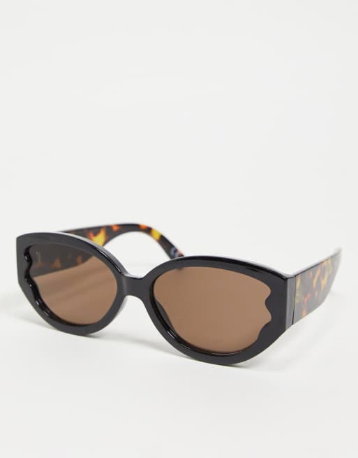 ASOS DESIGN – Svarta ovala solglasögon i plast med spräckliga skalmar