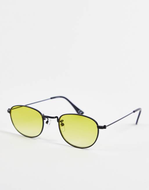 ASOS DESIGN – Svarta ovala solglasögon med gula glas