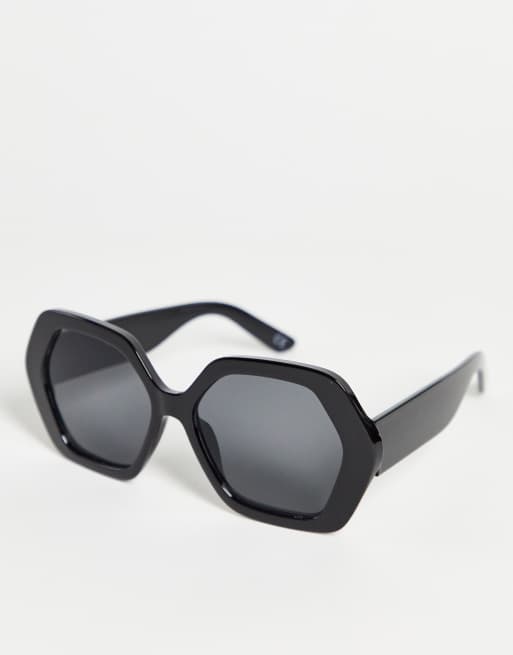 ASOS DESIGN – Svarta sexkantiga solglasögon i oversize och 70-talsstil - BLACK