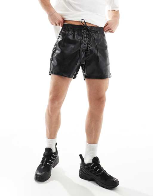 ASOS DESIGN – Svarta shorts i läderimitation med snörning