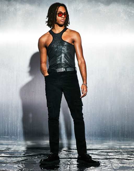ASOS DESIGN – Svarta, skinny cargobyxor i manchester