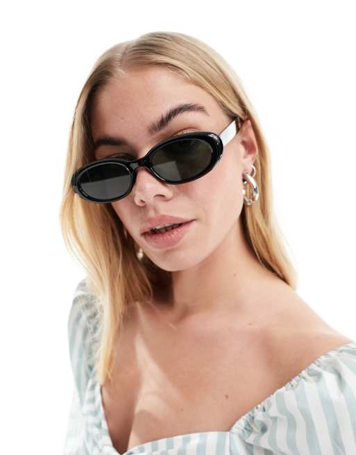 ASOS DESIGN – Svarta solglasögon med G15 lins och ovala, fasade bågar