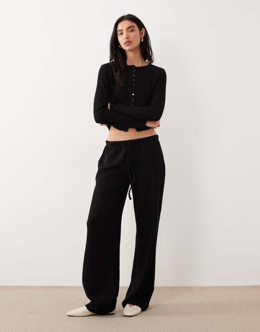ASOS DESIGN – Svarta, stickade, texturerade byxor med raka ben och knytning i midjan