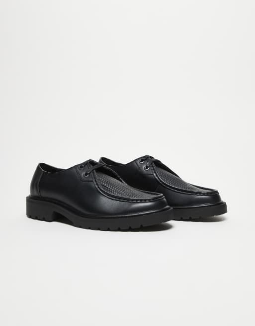 ASOS DESIGN – Svarta, strukturerade skor med apron-tå och snörning