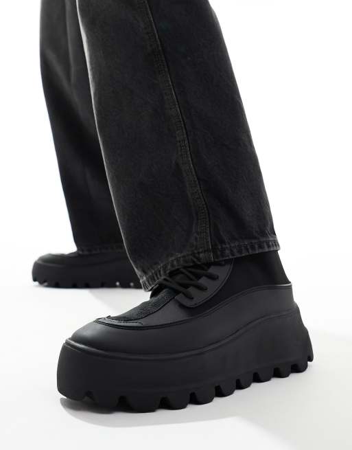 ASOS DESIGN – Svarta strumpboots med grov sula, snörning och applikationer