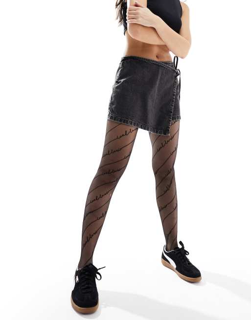 ASOS DESIGN – Svarta strumpbyxor i 30 denier med "C'est la vie"-text