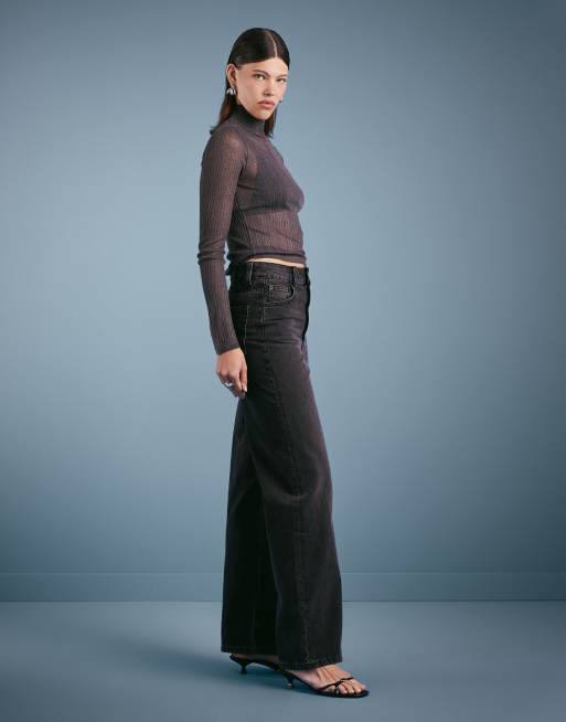 ASOS DESIGN – Svarta, tvättade dad jeans med vida ben