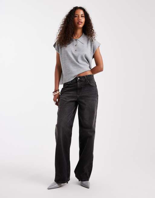 ASOS DESIGN – Svarta, tvättade och baggy jeans med låg midja
