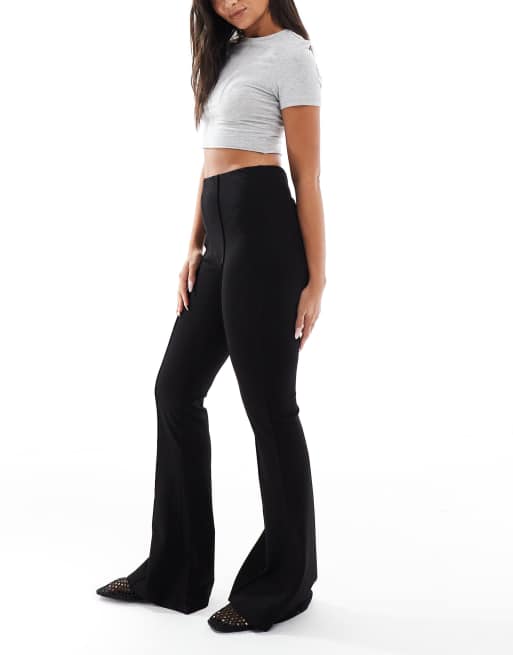 ASOS DESIGN – Svarta, utsvängda byxor i courtellejersey med stråveck