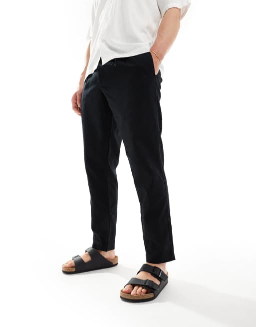 ASOS DESIGN – Svarta, vida chinos i linne med veck