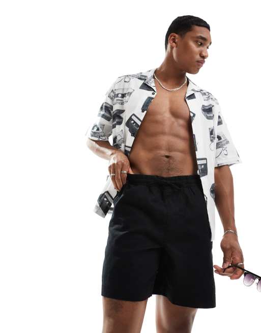 ASOS DESIGN – Svarta vida linneshorts
