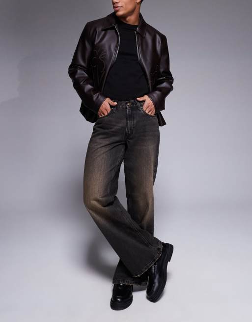 ASOS DESIGN – Svarta, vida, utsvängda jeans med bruntvättad finish