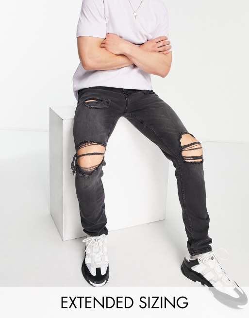 ASOS DESIGN – Svarttvättade skinny jeans med slitna knän