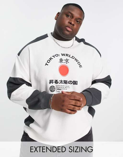ASOS DESIGN – Svartvit blockfärgad sweatshirt i oversize med stadstryck