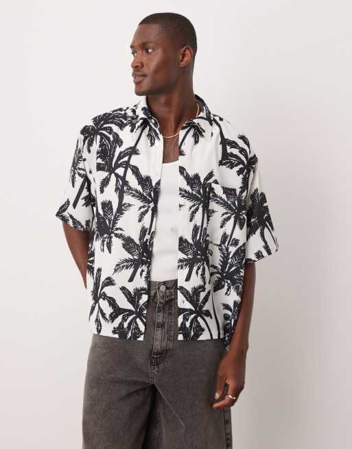 ASOS DESIGN – Svartvit skjorta i oversize med boxig passform och palmmönster