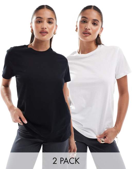 ASOS DESIGN – Svartvit t-shirt med rund halsringning i bomullsmix, 2-pack - MULTI