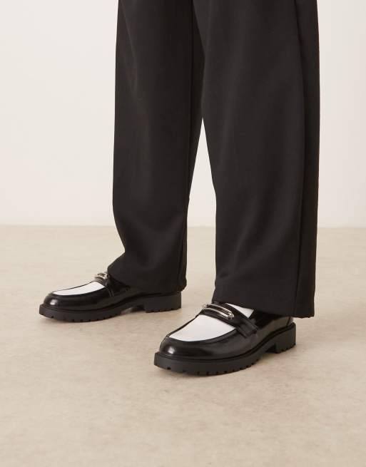 ASOS DESIGN – Svartvita loafers med guldfärgad metalldetalj och räfflad sula