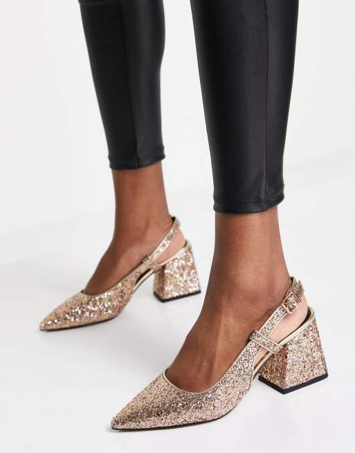 ASOS DESIGN – Sydney – Glittriga skor med halvhög klack och hälrem