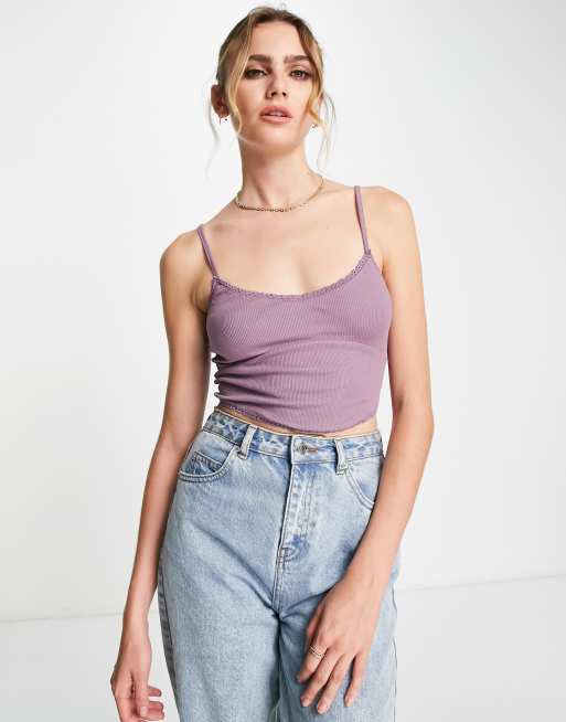 ASOS DESIGN – Syrénlila linne med scarffåll och spetskant