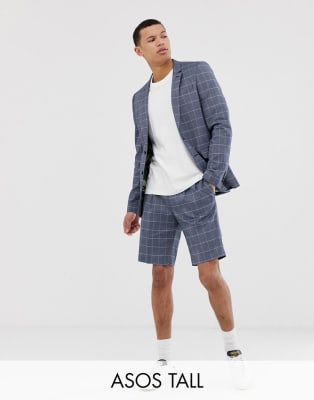 ASOS DESIGN Tall – Blårutig kostym i linnetyg med smal passform