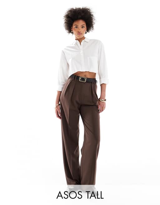 ASOS DESIGN Tall – Bruna, figursydda byxor med vida ben