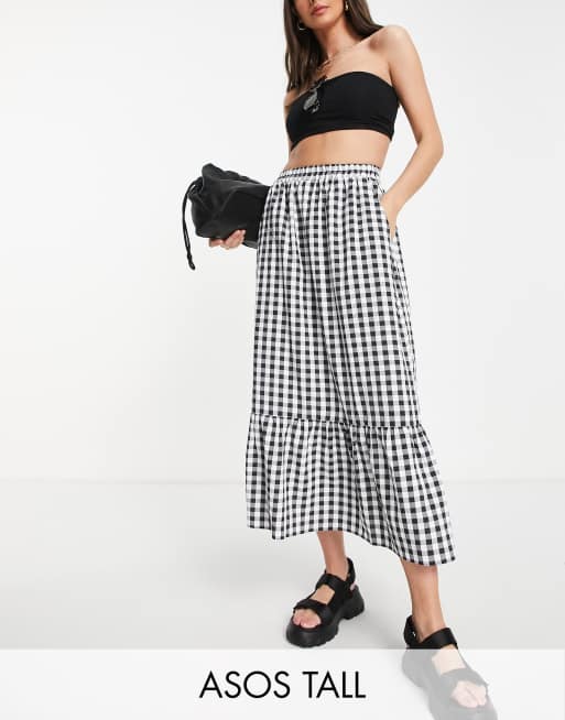 ASOS DESIGN Tall – Ginghamrutig panelsydd midikjol med fickor