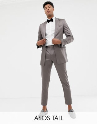 ASOS DESIGN Tall – Glansig, mörkgrå kostym i satin med extra smal passform