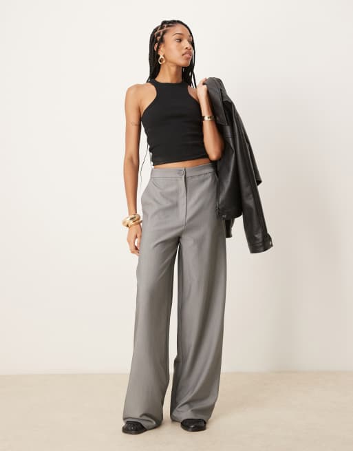 ASOS DESIGN Tall – Grå, figursydda byxor med raka ben och avslappnad passform