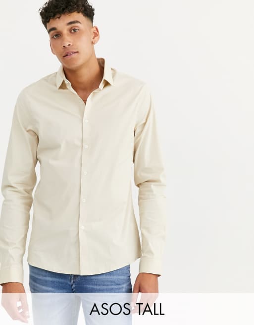 ASOS DESIGN Tall – Gräddvit skjorta med smal passform och stretch