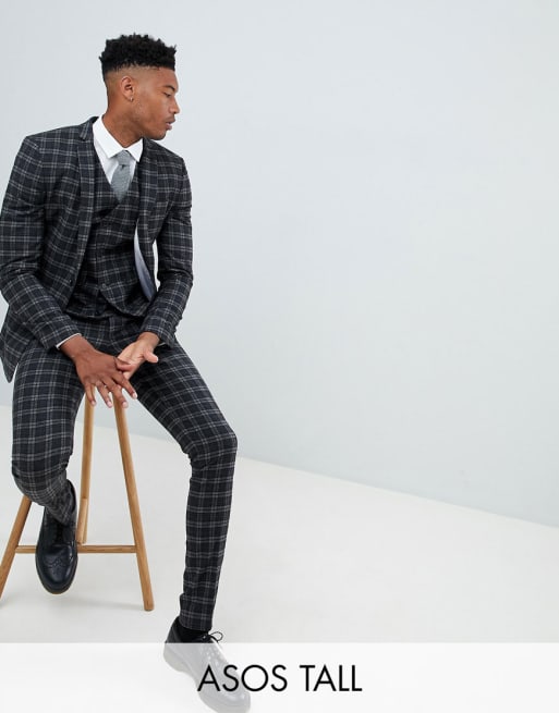 ASOS DESIGN – Tall – Grårutig kostym i superskinny passform