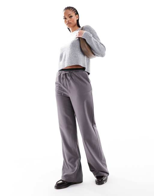ASOS DESIGN Tall – Mörkgrå, figursydda byxor med vida ben och kontrasterande midjeband