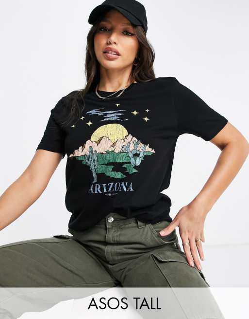 ASOS DESIGN Tall – Svart t-shirt med sceniskt tryck