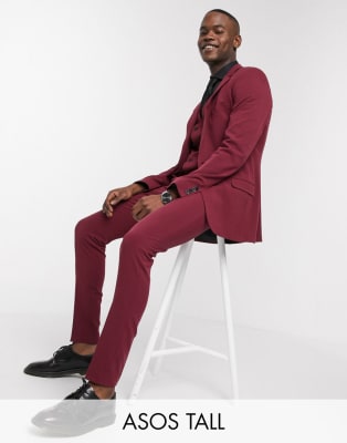 ASOS DESIGN – Tall – Vinröd kostym i superskinny fit