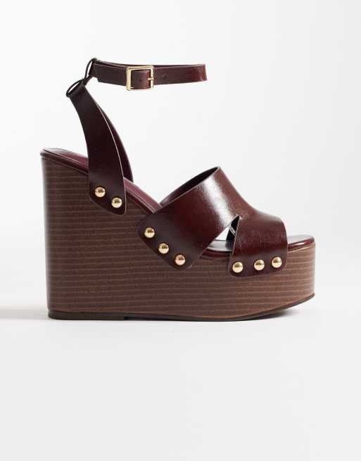ASOS DESIGN – Tamara – Vinröda kilklackar med utskurna detaljer och nitar
