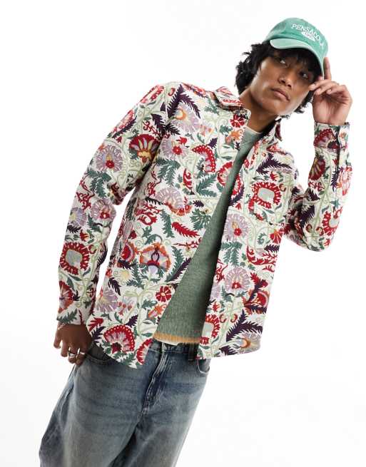 ASOS DESIGN – Tapetblommig, rustik overshirt i jacquardväv