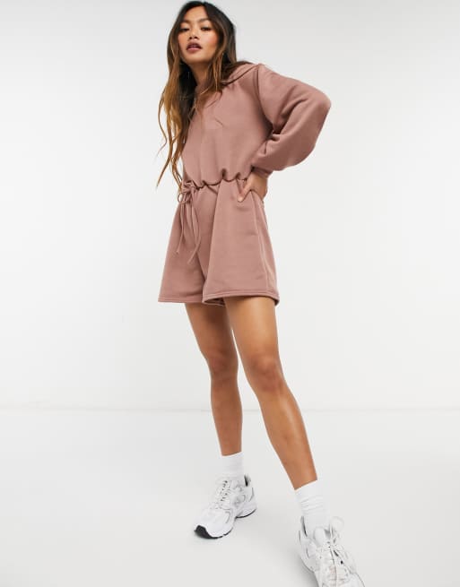 ASOS DESIGN – Tegelfärgad playsuit i tvättat sweatshirttyg