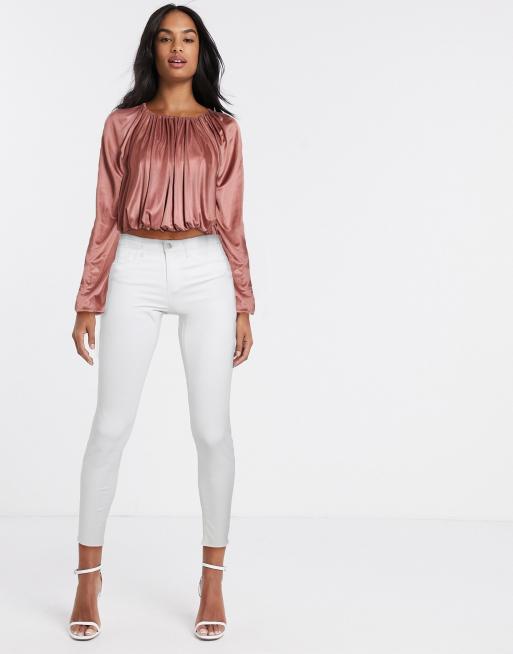 ASOS DESIGN – Tobaksfärgad topp med stora ärmar och ballongfåll