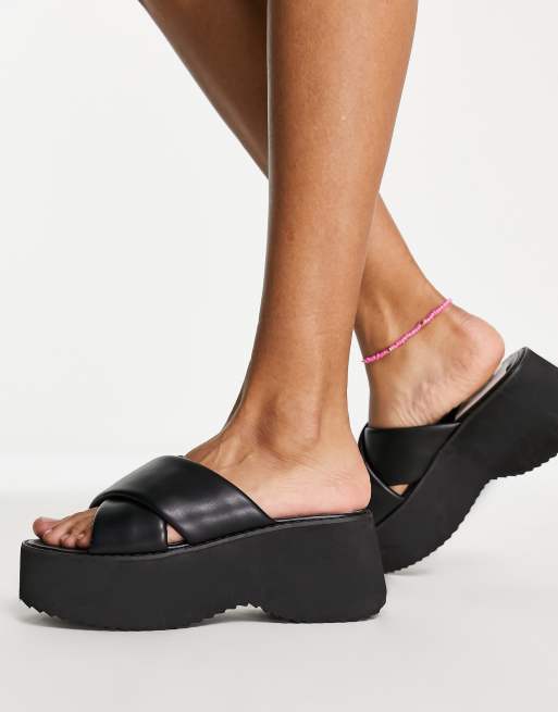 ASOS DESIGN – Tornado – Svarta, vadderade flatform-skor med korsade remmar
