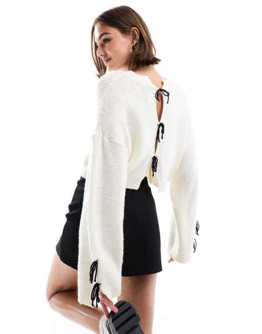 ASOS DESIGN – Tröja med rund halsringning och knytning med rosetter