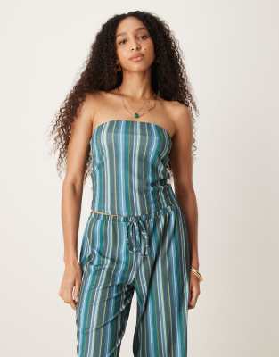 ASOS DESIGN – Turkosrandig, texturerad bandeau-topp, del av set