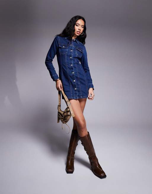 ASOS DESIGN – Tvättad, figursydd och kort skjortklänning i denim