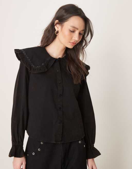 ASOS DESIGN – Tvättad skjorta i twill med volangkrage