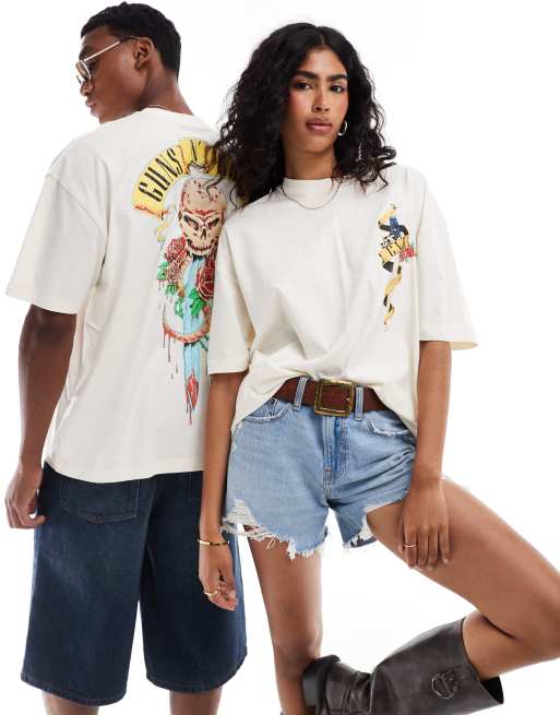 ASOS DESIGN – Unisex – Vit t-shirt i oversize med 'Guns N' Roses'-tryck