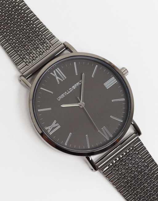 ASOS DESIGN – Vapengrå matt klocka med mesharmband i rostfritt stål