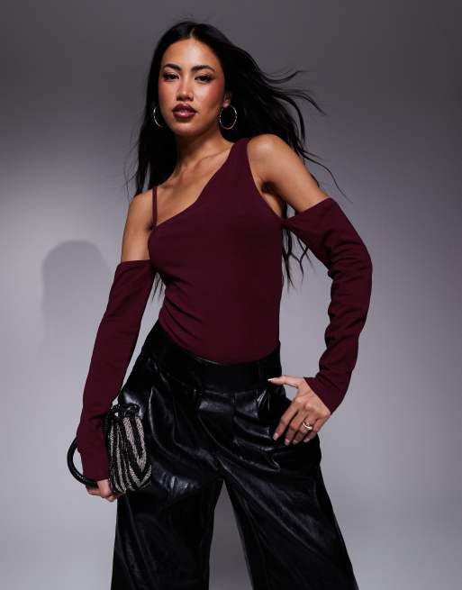 ASOS DESIGN – Vinröd, asymmetrisk body med smala axelband