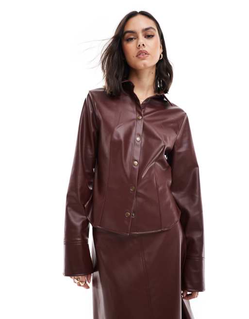 ASOS DESIGN – Vinröd, figursydd skjorta i läderimitation