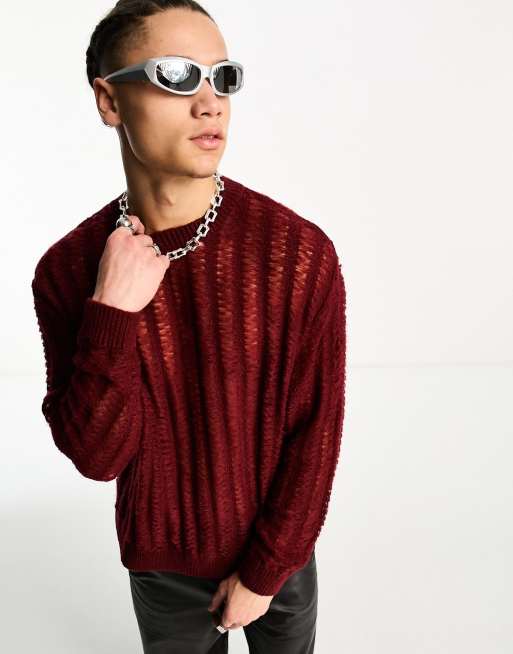 ASOS DESIGN – Vinröd, fluffigt stickad tröja med håldetaljer