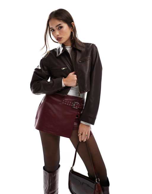 ASOS DESIGN – Vinröd harrington-jacka i läderimitation med tvättad finish
